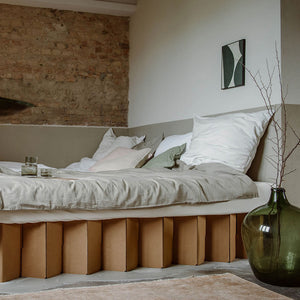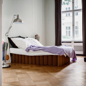 Bett 2.0 is a simple and sustainable alternative to a traditional bed platform. Available and sold in the EU for the past 10 years it's now available in the USA! Made of high quality corrugated cardboard containing 70% post consumer recycled material, it can be 100% recycled at the end of its life cycle.